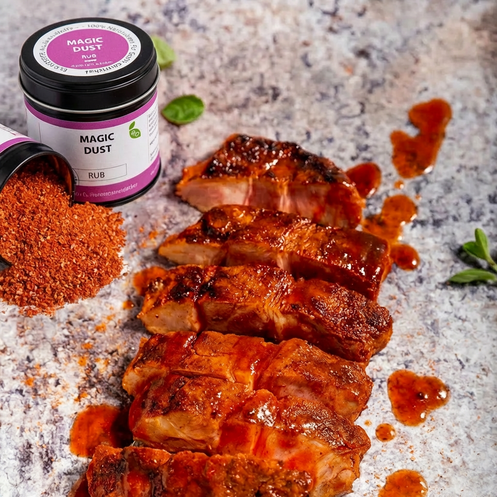 Magic Dust ist eine der beliebtesten BBQ-Rubs überhaupt – und unsere Bio-Version überzeugt mit natürlicher Power. Paprika sorgt für die würzige Basis, Rohrzucker und Jaggery (ayurvedischer Vollrohrzucker) bringen karamellige Süße und sorgen für schöne Röstaromen. Knoblauch, Zwiebel, Cayenne und Chiliflocken liefern den würzigen Kick, abgerundet durch schwarzem Pfeffer und Meersalz.